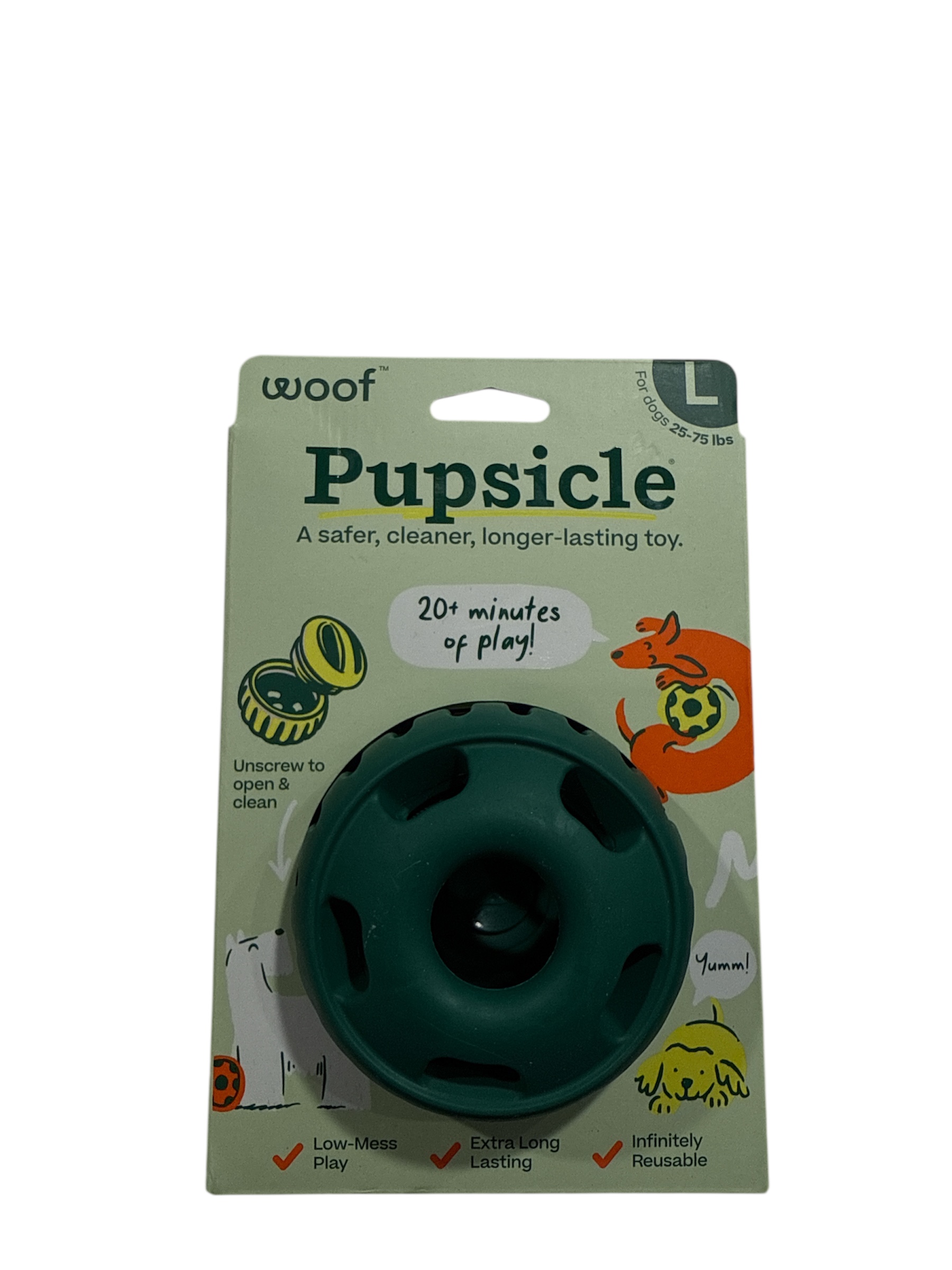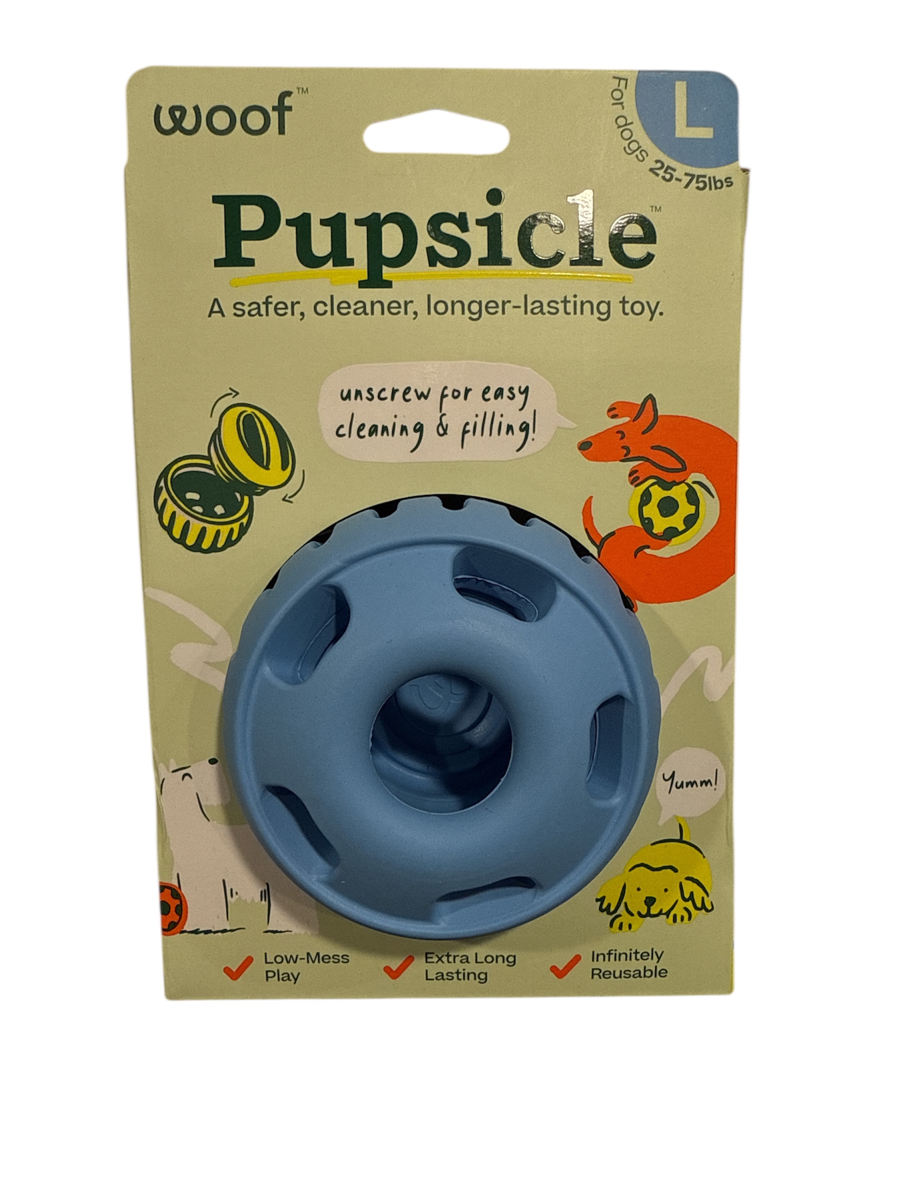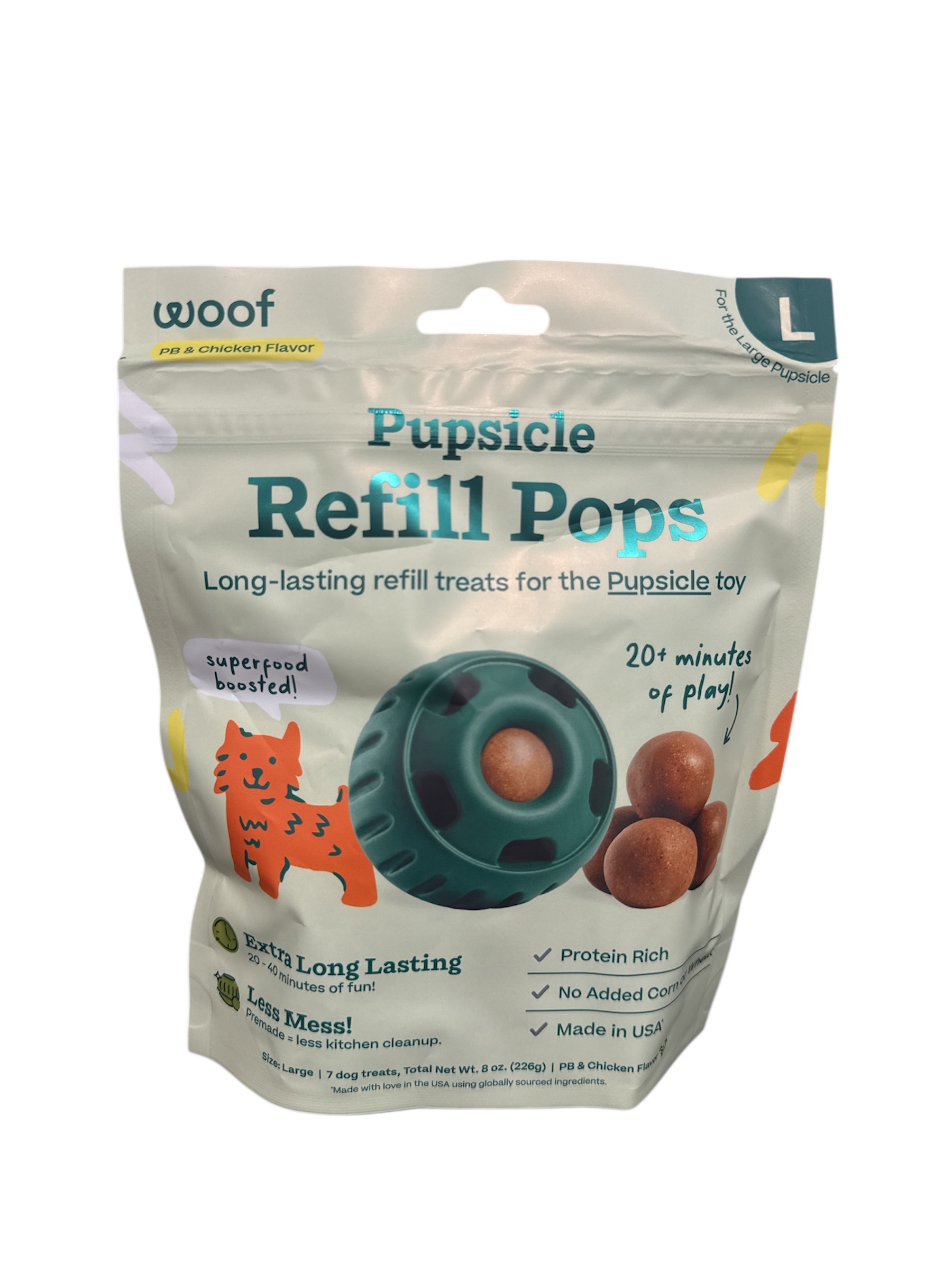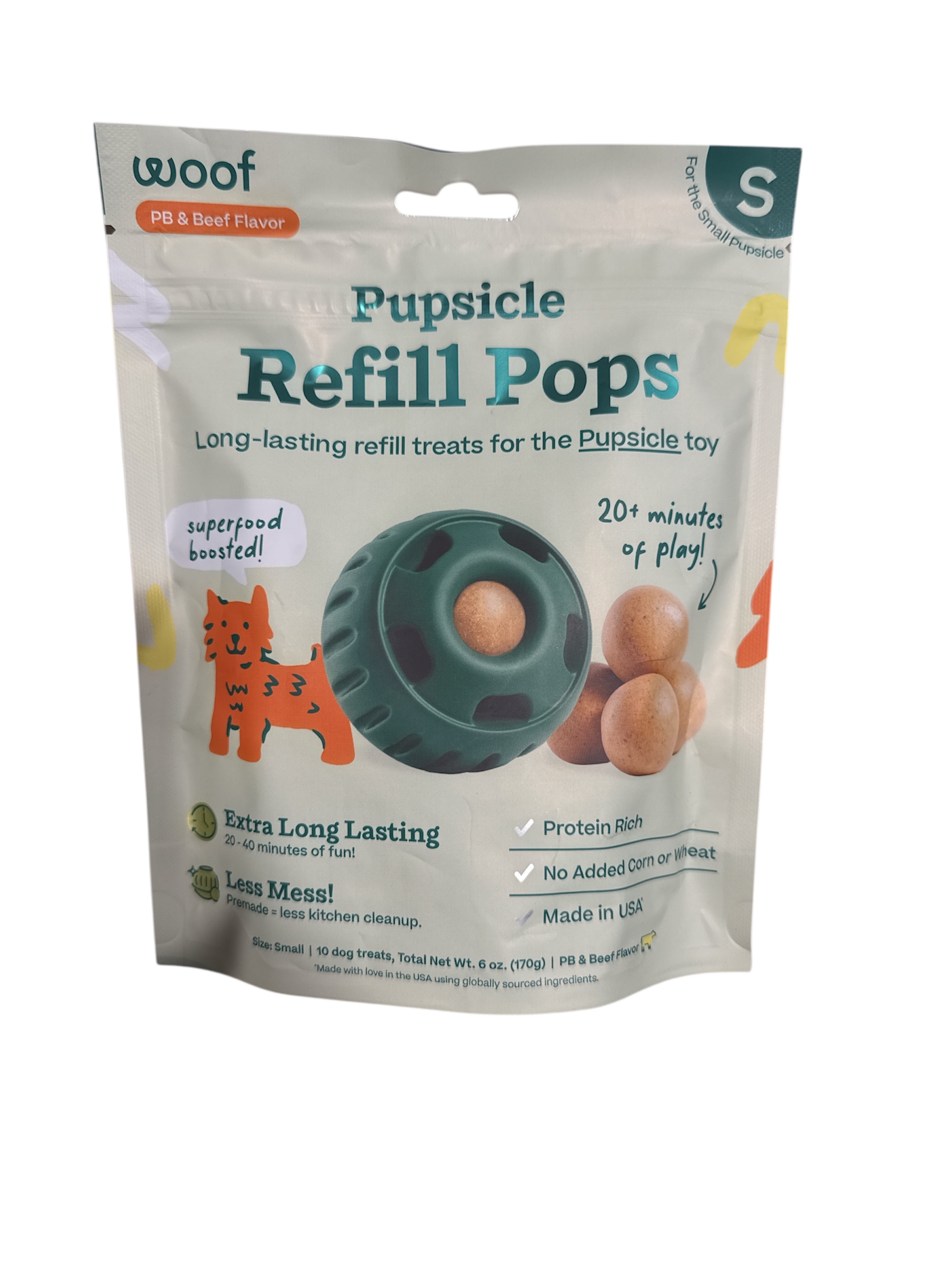 Indulge your pup with Woof Pupsicle Pops Refills Calming Beef Grain-Free Large Lickable Dog Treats. Each delicious treat is made in the USA with high-quality ingredients to nourish your furry friend. These calming pops provide 20-40 minutes of happy playtime, with the added benefit of essential nutrients to help your four-legged family member relax. Each pop contains soothing ingredients like passion flower to promote a sense of calmness. These all-natural treats are shelf-stable and don’t re