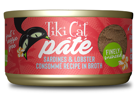 Sardine, lobster broth, sunflower seed oil, locust bean gum, guar gum, xanthan gum, choline chloride, paprika, taurine, zinc sulfate, vitamin E supplement, niacin (vitamin B3), thiamine mononitrate (vitamin B1), calcium pantothenate, vitamin A supplement, iron sulfate, riboflavin supplement (vitamin B2), pyridoxine hydrochloride (vitamin B6), copper sulfate, folic acid, manganese sulfate, potassium iodide, vitamin D3 supplement, menadione sodium bisulfite complex (source o