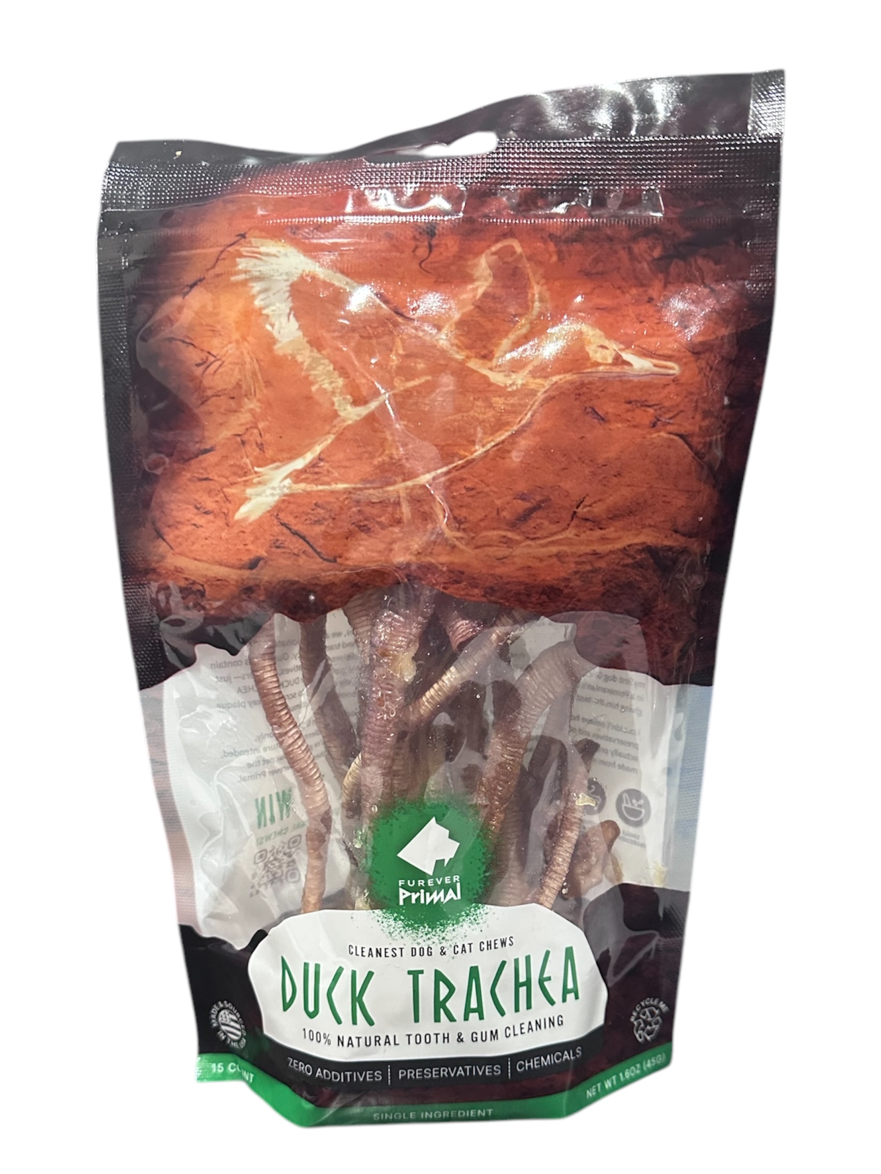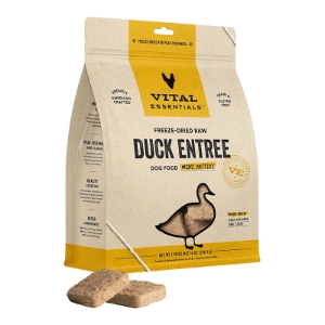 Chicken, chicken broth, chicken liver, chicken gizzard, chicken heart, duck, tricalcium phosphate, potassium chloride, choline chloride, magnesium sulfate, salt, taurine, ferrous sulfate, thiamine mononitrate (vitamin B1), vitamin E supplement, tuna oil, niacin (vitamin B3), zinc oxide, vitamin A supplement, biotin, vitamin B12 supplement, copper amino acid chelate, manganous oxide, calcium pantothenate, riboflavin supplement (vitamin B2), sodium selenite, pyridoxine hydrochloride (vitamin B6