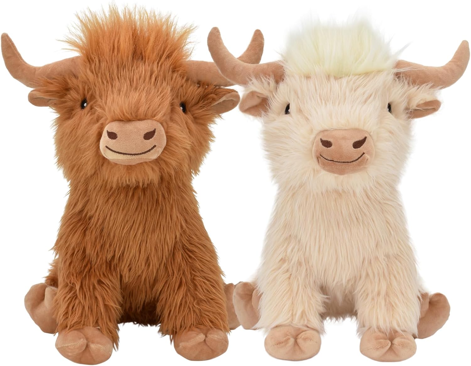 This adorable Highland Cow is eager to join your dog's toy collection! With its fluffy fur, impressive horns, and a cozy plush interior, this toy beautifully represents the beloved Scottish farm animal. At 14 inches in size, it's ideal for larger dogs who enjoy a good wrestle or smaller dogs seeking a snuggly companion for their nap time. The soft plush material is perfect for gentle chewers, while the built-in squeaker stimulates natural play instincts, and the crinkly texture enhances inter